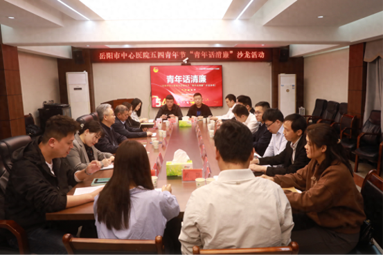 在五四青年节到来之际,岳阳市中心医院团委组织开展了“青年话清廉”沙龙活动,医院党委书记张壮军,党委委员、纪委书记王沙莎,党委委员兼党建办主任郭飞香及院内十余名40岁以下年轻干部代表参加。
