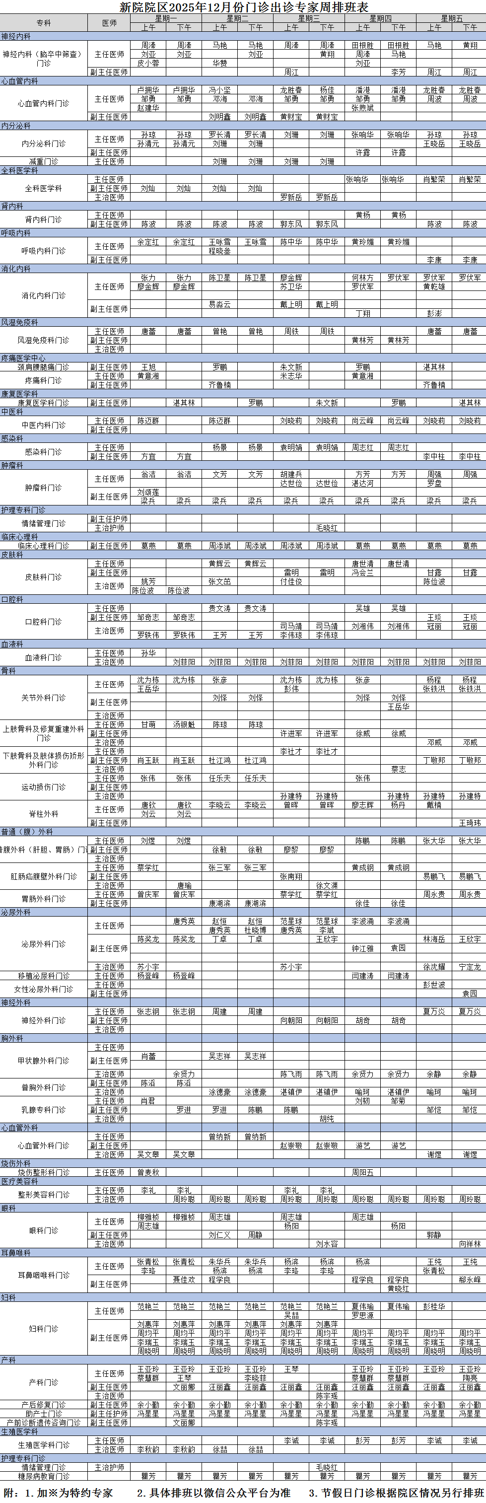 2025年12月新院区排班表